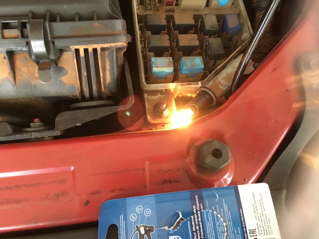Oké, nézzünk Youtube-ot, hogyan kell kiszerelni az első lámpát. „First step, you have to remove the bumper…” hát rendben, ezt is elvetettük, innen nézve mindjárt szimpatikusabb volt az a 2 centi rés, ami rendelkezésre állt, hogy az izzót a 10 centi hosszú foglalatával együtt kibányásszam. Ez már nem a balett-táncos, hanem a nőgyógyász szint. Nem volt egyértelmű, hogy az onnan kijön, pláne nem, hogy visszamegy, de valahogy sikerült a lehetetlen. Megérte? NEM!