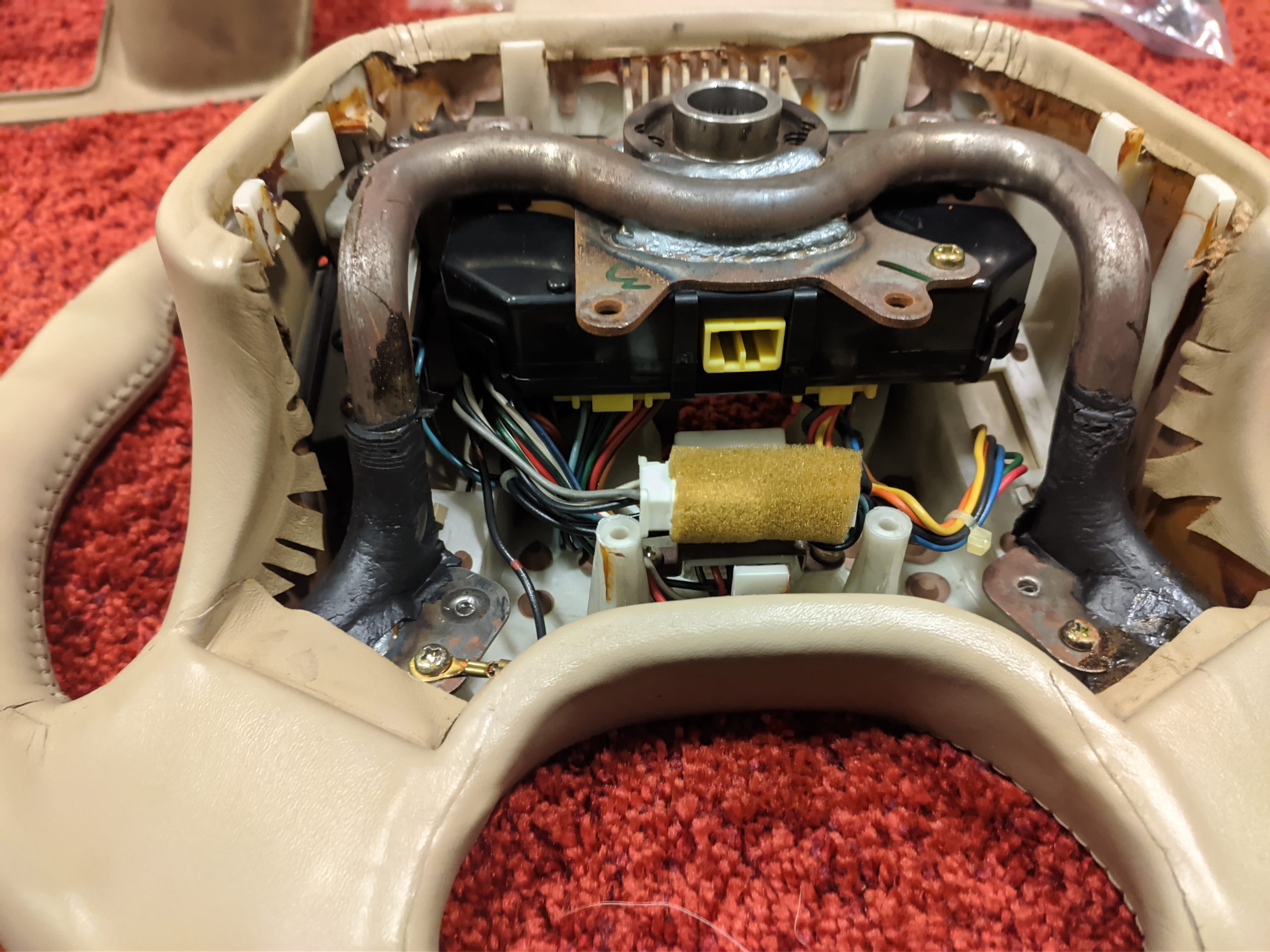 Elkészült a kormánygomb, lézergravírozással. Nem pontosan eredeti (az dombornyomott), de még jobban is tetszik. Na meg olcsóbb. Azonban a kormánygombok nem működtek, gyors szétszedés-nyomozás után kiderült, hogy a vezérlőelektronika egyik kondenzátora szállt el.