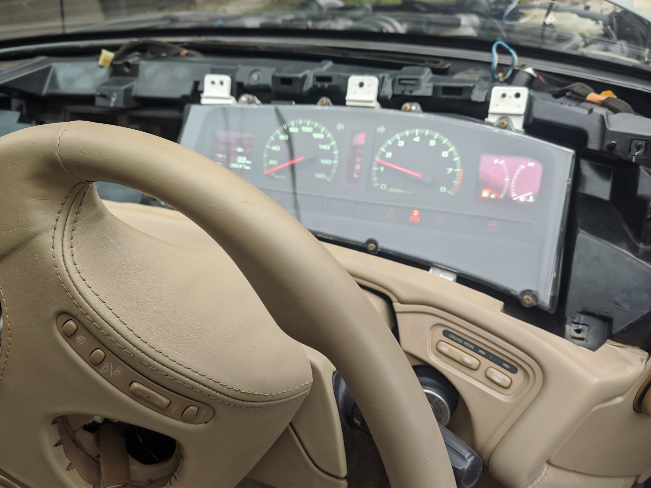 Az egyik nagy kérdés a műszerfal volt, szerencsére könnyen javítható volt minden kár, csak ki kellett cserélni a kondenzátorokat és újjáépíteni a földelését. Elsőre a fordulatszámmérő nem működött, de még két kondenzátor cseréje után ez is megjavult.