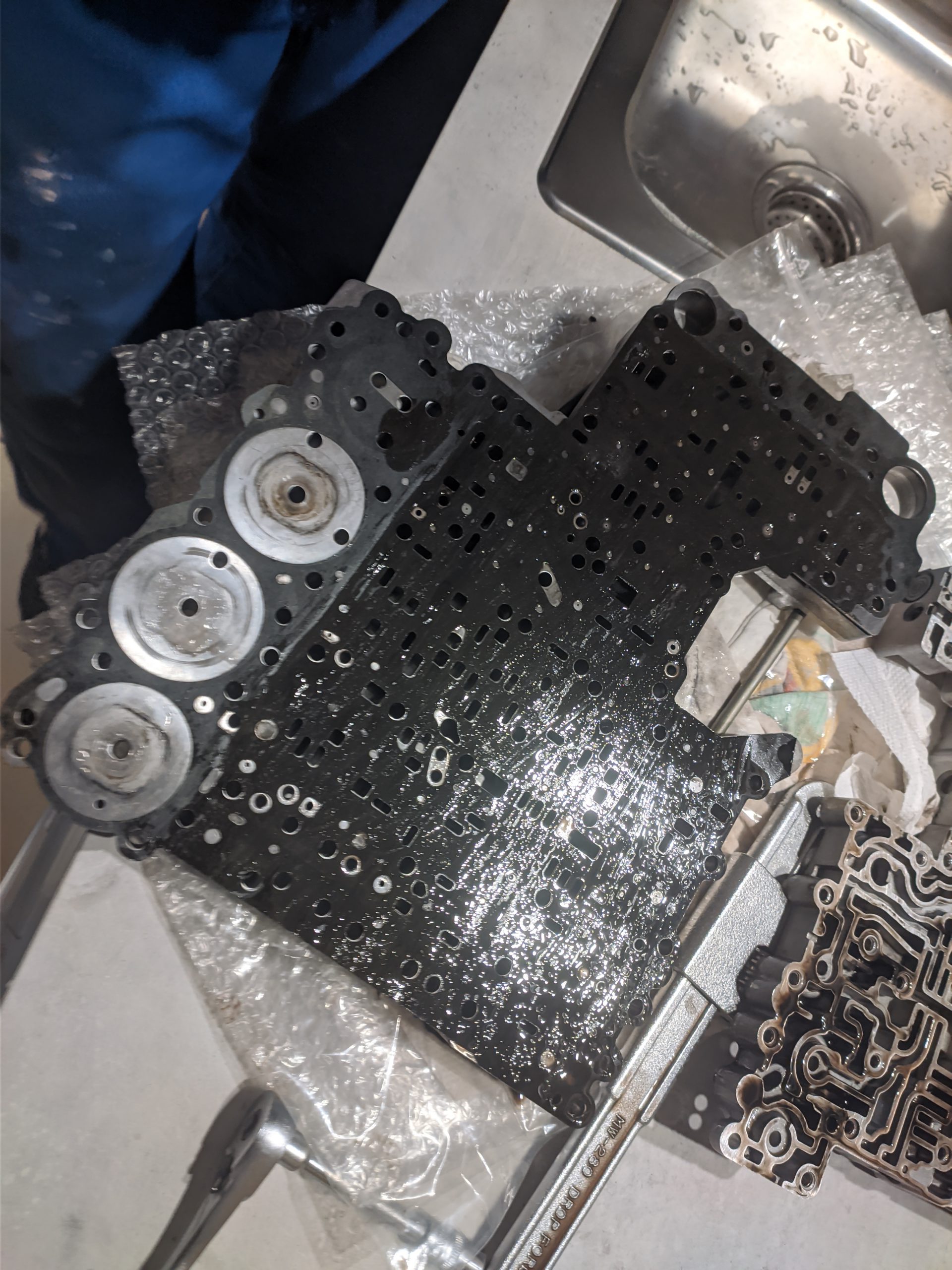 Végül? Veteránnál sosincs vége! Szóval van még baja a kicsikének bőven, CRT halott (lehet az is marad, B terv… majd lesz) és ami ennél fontosabb, két fokozatot Japánban hagyott a váltó. Mivel csak négy jutott neki, ez igen kellemetlen. Első lépés egy folyadékcsere, illetve a szolenoidok vizsgálata. Hát a harminc év nem tett sok jót a folyadékkal, bár a képen rosszabbnak látszik, mint amilyen. Mindenesetre megérte szétszedni.