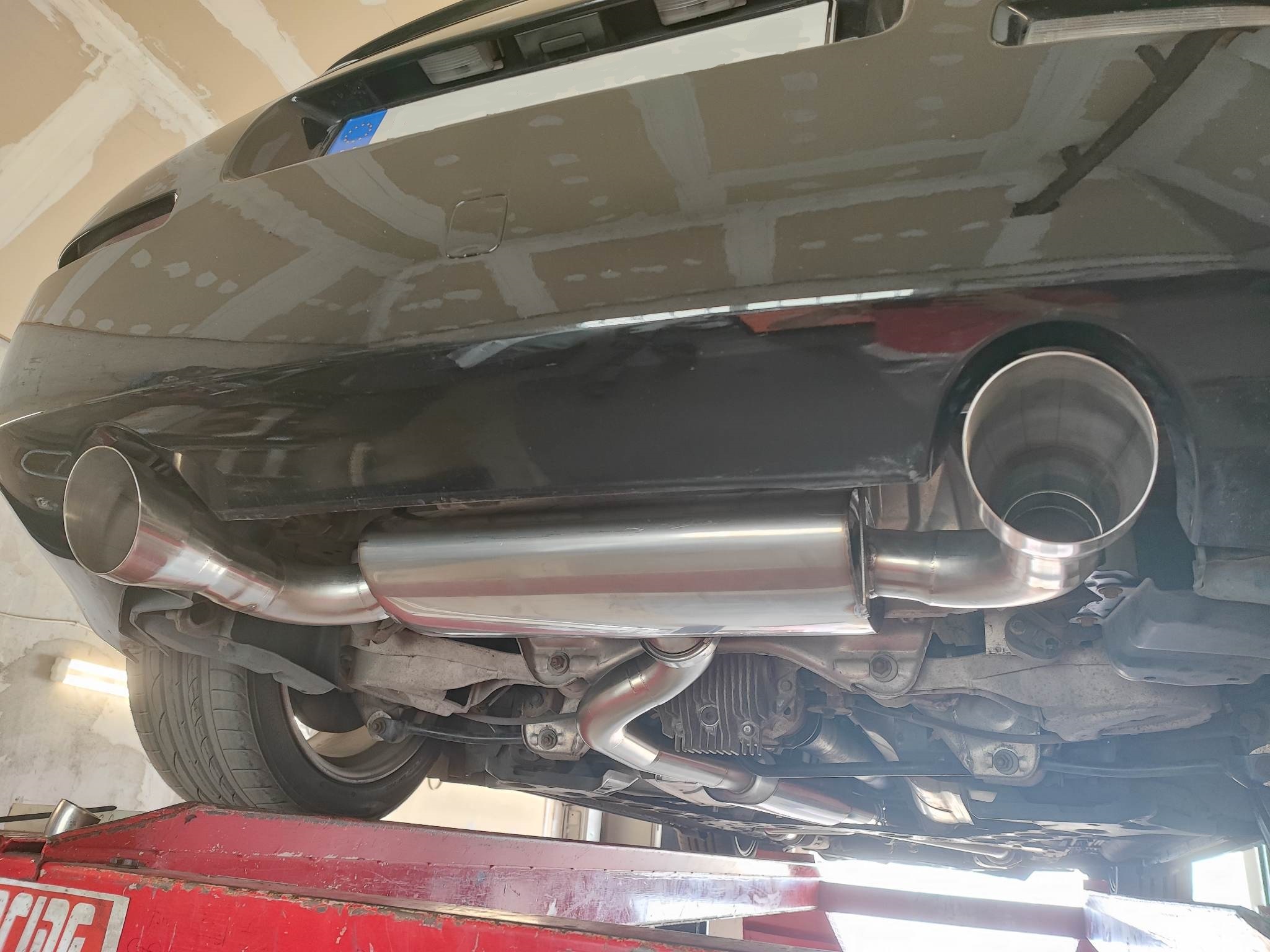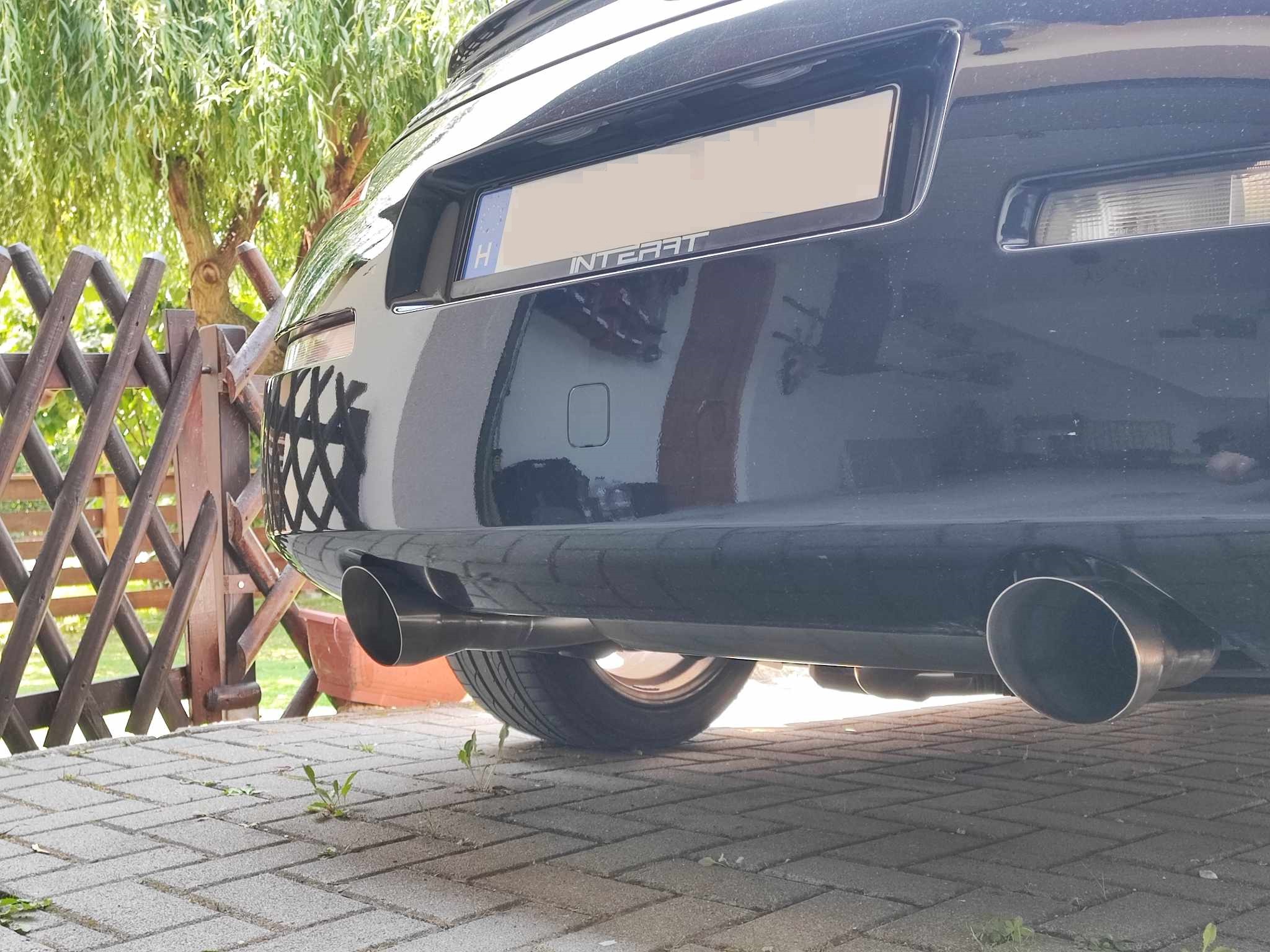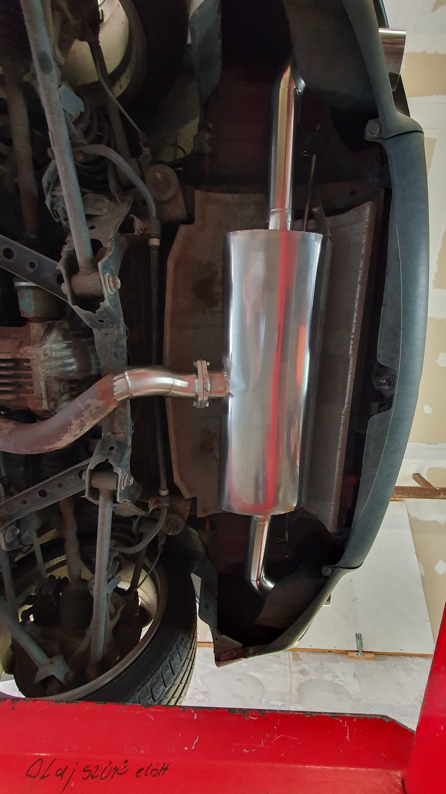 Megállás nélkül vigyorogtam a próbakörön, nagy örömmel vittem is vissza, hogy akkor folytathassa a munkát. Viccelődve mondta is, hogy majd 3 nap múlva, mert kb. annyi idő kell neki, hogy kihűljön, még ez egy normál autónál pár perc. Nem utolsó szempont az sem, hogy a gyári dob nagyon nagy, nagyon nehéz, ez pedig tömegben a töredéke. Hátulról nézve nem lóg ki a dob lefelé, amit mindig is utáltam. A végek nagyobbak, kicsit csapottabbak, nagyon jól illik a formához. Azt meg is mondta, hogy ennél nagyobb véget ő azért nem rakott (hely lett volna), mert szerinte ez harmonizál a formával és a gyári felnikkel. Én pedig elégedett voltam vele. Csináltam videót is, de fogalmam sincs, hogy mivel lehetne felvenni kipufogó hangot, hogy az a valóságot adja vissza, mert nekem nem jött össze 🙁 Aznap este kész is lett a maradék munka, a katalizátor tökéletesen teszi a dolgát ismét, végre. Én nagyon elégedett vagyok, hazafelé az 1km-es út a garázsig majdnem 2 óráig tartott.