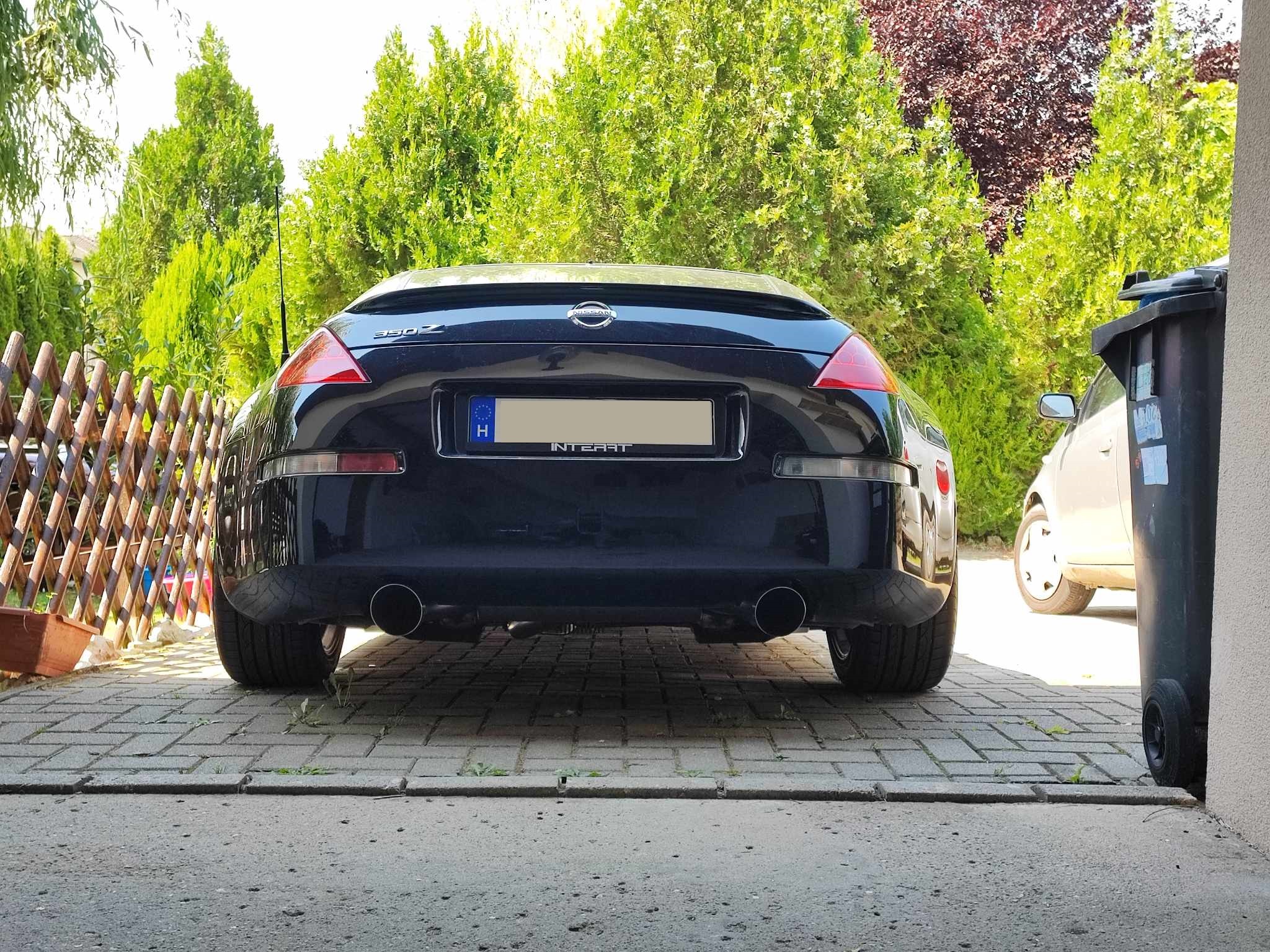 Kész lett, vágtában mentünk érte. Egyrészről a mi szemünknek gyönyörű alkotás született, na de a hangja… az egyébként is hihetetlen jó hangú HR motorkódos, utolsó éves 350Z változat a dupla szívósorral még az elődjeinél is szebb hanggal rendelkezik, így félő volt, hogy ebből a V6-ból nehéz szebb hangot kicsikarni. Hiszen már már tökéletes. Viszont a kész mű mindenféle várakozásunkat felülmúlta, nem csak úgy egy kicsit, hanem nagyon. Megdöbbentő volt.
