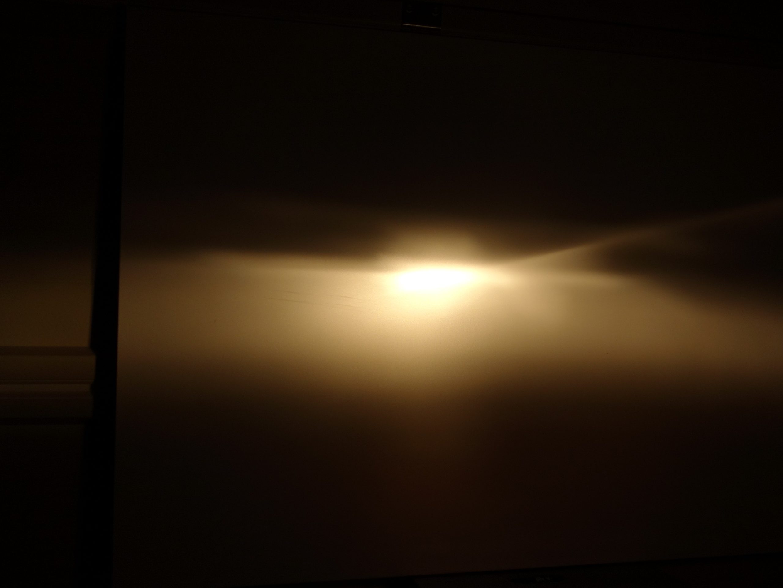 Ami egyből nagyon feltűnő, az a súlya: 275 helyett 666 gramm – annak tudatában, hogy a Sylvania-val ellentétben üveg ez talán nem meglepő – és sokkal robusztusabbnak, minőségibbnek érződik. Maga a csere egyszerű folyamat, a műanyag burkolat után egy keret tartja a helyén a lámpatestet, az egész nem több egy tucat csavarnál. Természetesen, ha már itt jártam akkor ki lett pucolva és be lett olajozva-zsírozva a mechanika. De következzen a lényeg, milyen a fény? Kezdjük az amerikaival: Egyetlen dolgot tud, szépen mosolyog. Mint vetítési kép igazából értelmezhetetlen, egy paca az egész, foltos, nem is nagyon megy sehova a fény. Ehhez képest a Koito-ban kipróbált sima halogén izzó – de az OSRAM LED is – egy teljesen más világ. Egyrészt kevésbé világít szembe, de sokkal több fényt ad oldalra és igazából mindenhova máshova is. Gyakorlatilag nincs olyan terület, ahol a Sylvania jobb lenne. A távolsági még rosszabb, a Sylvania igazából nem is világít messzebbre. A Koito-nál jól látszik, hogy megjelenik egy második vetítési terület az első fölött.