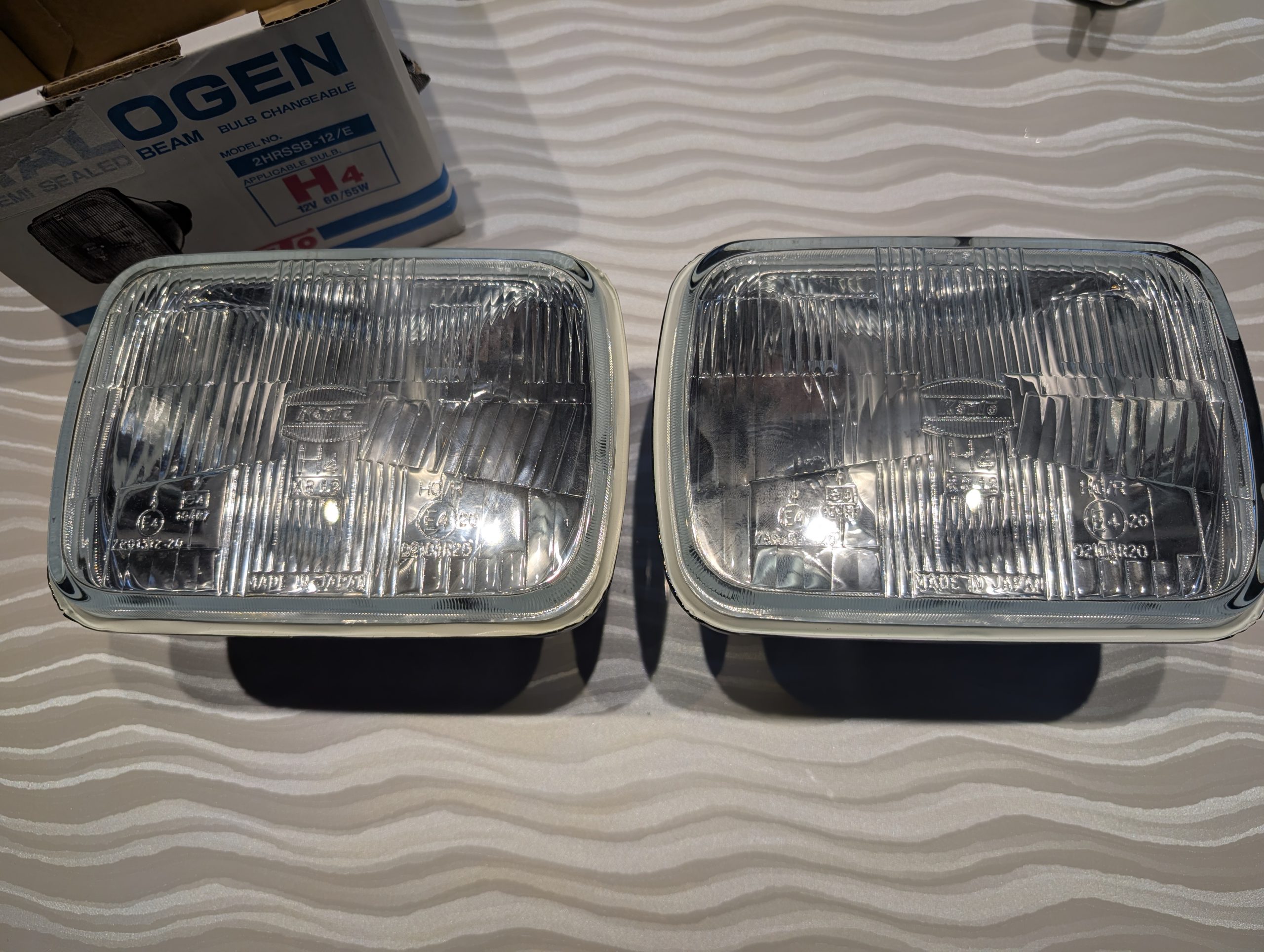 Így eljutottam oda, hogy EU-s Koito (gyári beszállító és a legjobb minőségű) lámpatesteket szeretnék az autóba, az „eredeti” Sylvania helyett (az eredeti „sealed beam” Koito volt, ezeket már Amerikában cserélték az autóban). Annyi autóban van ilyen, biztos simán beszerezhető bárhonnan gyári szám alapján a gyári, japán autóknál úgyis Koito az OEM beszállító. Ez jó ötlet volt, de nem jött be. Gyári számok alapján (beleértve Toyota, Mazda sok típusát) csak nagyon drága opciókat találtam, pedig ezt a terméket még ma is gyártja a Koito, 14000 forint / darab áron, akkor meg igazán nem akarok 100000-t kifizetni érte. A modellszámára is nehéz keresni, de végül valami véletlen folyamán rátaláltam a CruiserWorld oldalára, ahol Land Cruiser-hez árulták pontosan azt, amit én szerettem volna (meg az összes többi megfelelőjét is, ha véletlen „nagy kör”-t akar valaki az is van náluk, nem vészes árban), így rövid levelezés és várakozás után kézhez is kaptam a két lámpát: