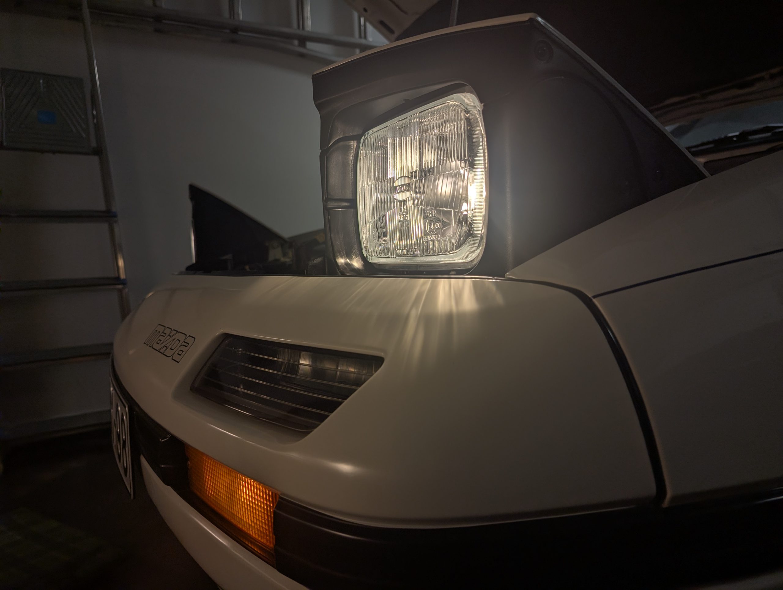Ezzel ellentétben a Japánok előszeretettel alkalmazták „semi-sealed beam” néven futó megoldásukat. Hiszen miért ne lehetne az amerikai lámpatestet újrahasználni, de cserélhető izzós foglalattal, H4 (vagy R2) izzókkal. Az FC ezt a megoldást használja, de számtalan másik japán autó is ilyen: AE86, Mk3 Supra is „nagy téglalap”, MX-5 NA, Toyota Land Cruiser pedig „nagy kör”.
